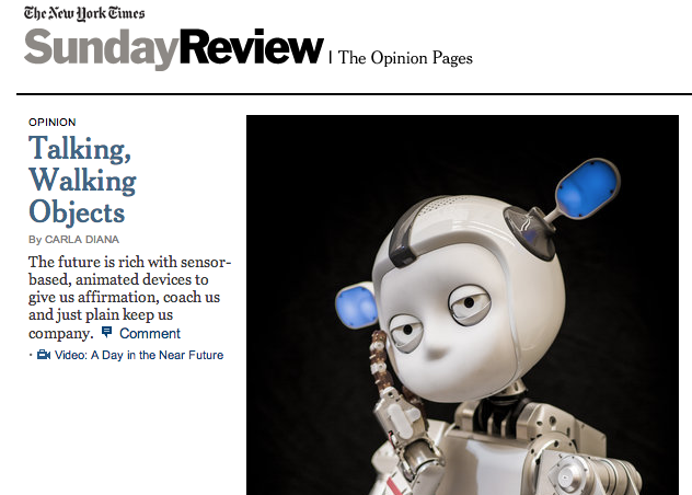 Cover feature in the New York Times Sunday Review alongside the essay Our Talking, Walking Objects